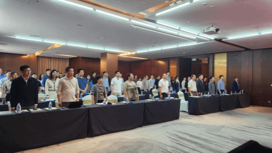 上午会议开始前,在郑中兵书记带领下集体奏唱《国歌》。