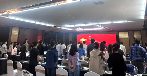 在会议最后,全体起立,齐唱《歌唱祖国》