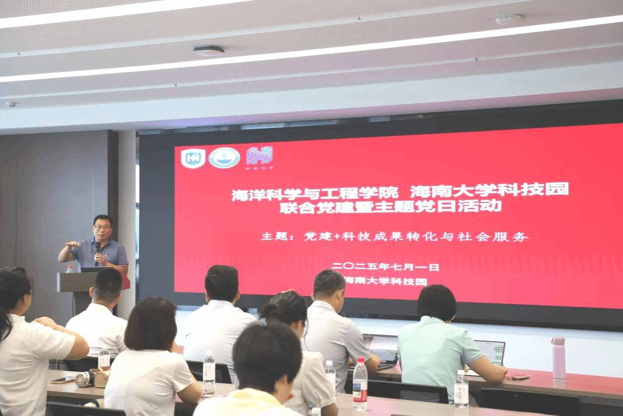 在党的第104个生日这一具有特殊意义的日子里,为进一步深化党建与业务融合,我校yl88858永利集团精心组织 50 余名教师党员走进海南大学科技园参观交流,与大学科技园管理中心党支部联合开展主题党日活动,深入研讨推动科技成果转化,提升社会服务能力的有效路径。活动由yl88858永利集团党总支书记郑中兵主持。